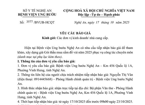 Sáng ngày 25/9/2025, tại Hội trường 5 Bệnh viện Ung bướu, Sở Y tế Nghệ An đã tổ chức Lễ công bố Quyết định bổ...