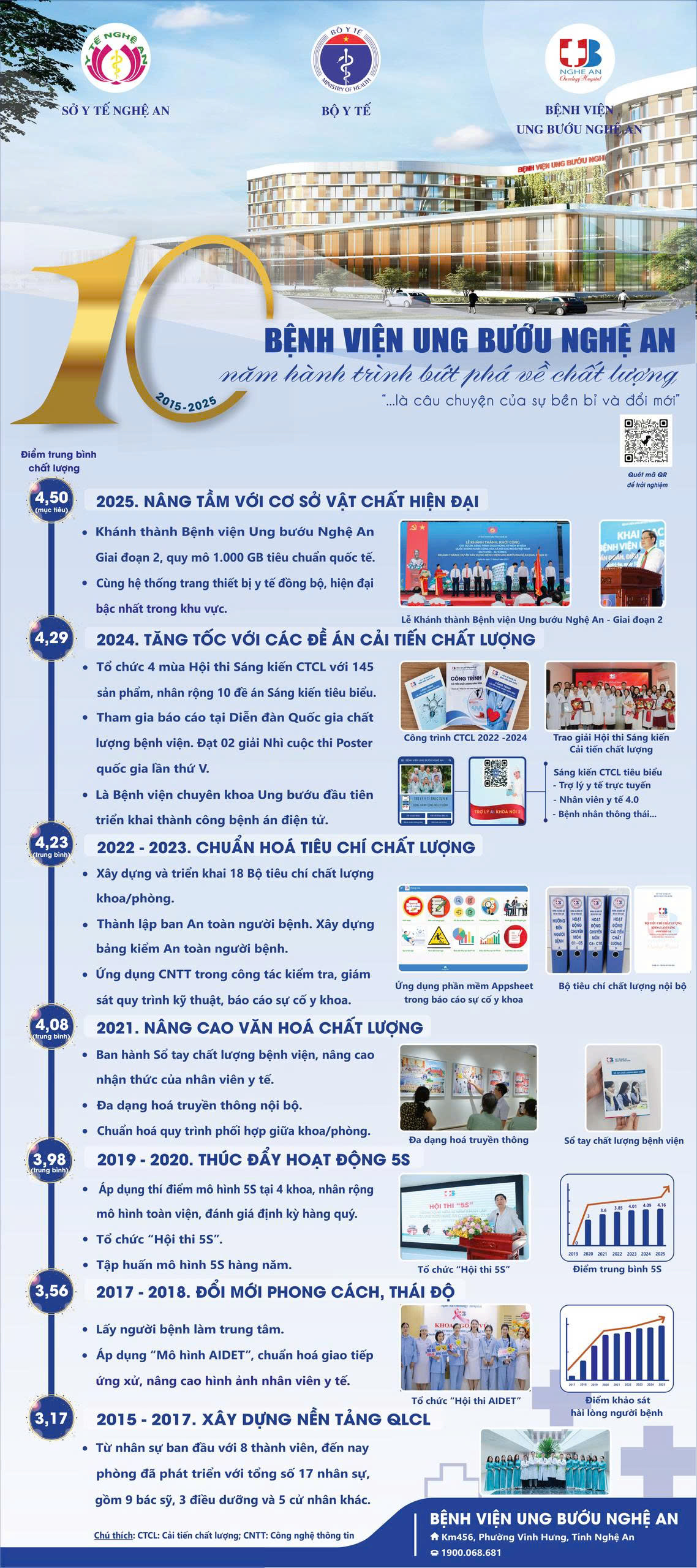 Standee giới thiệu về thành tích trong quản lý chất lượng của bệnh viện Ung bướu Nghệ An giai đoạn 2015-2025 được Bộ Y tế lựa chọn trưng bày tại triển lãm của hội nghị.