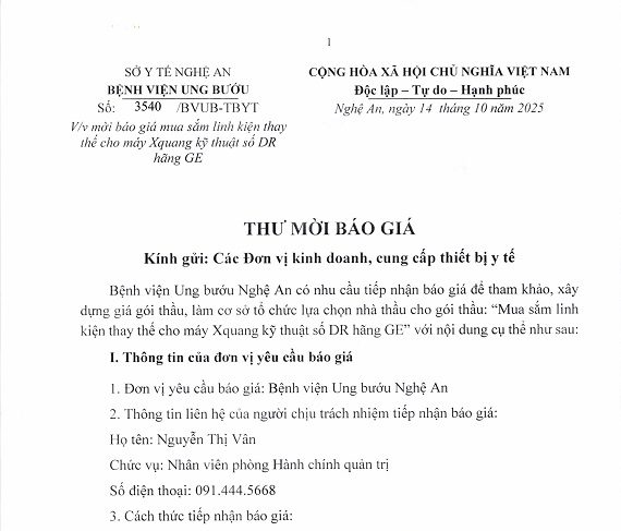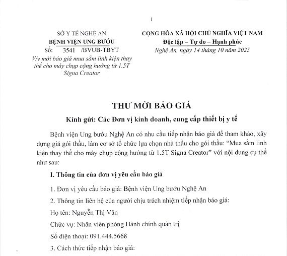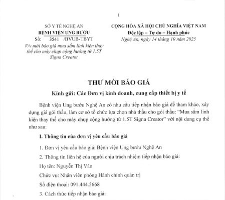 Ngày 2/8/2021, UBND tỉnh Nghệ An đã ban hành Quyết định số 2711/QĐ-UBND về việc phê duyệt danh mục và kế hoạch lựa chọn nhà thầu mua sắm các mặt hàng vật tư, hoá chất, sinh phẩm sử dụng trong phòng, chống dịch COVID-19 tại Bệnh viện Ung bướu Nghệ An giai đoạn 2021-2022.